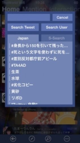 トレンド機能と検索セーブのちょっとした説明 Ver3.0から「トレンド」を閲覧可能になりました。 (画像は日本のトレンド) トレンドとは簡単にいえば「Twitter内で流行っている言葉」です。 TWではこのトレンドを地域ごとに観ることが可能になっています。 初…